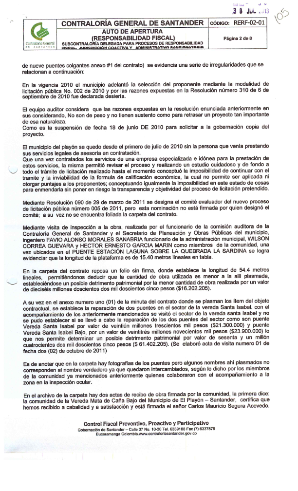 de la Contraloría General de Santander, con el objeto de dar cumplimiento a lo